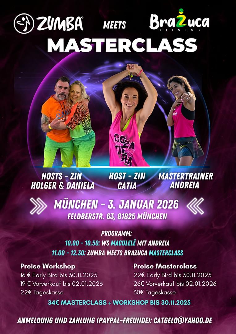 Zumba meets Brazuca ist eine spannende Fusion aus einer Zumba Masterclass und brasilianischen Rythmen. Zumba Instrukturen präsentieren den brasilianischen Gästen Ihre besten Choreos und lassen sich von den brasilianischen Mastertrainern inspirieren