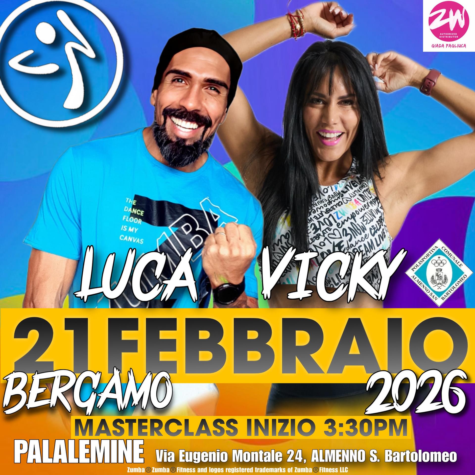 ✨ MASTERCLASS SPECIALE ZUMBA® ✨ Per la prima volta insieme, Luca De Nigro e Vicky Zagarra sullo stesso palco per un evento unico! Un’intera masterclass in un grande palazzetto, aperta ad allievi, istruttori e appassionati di Zumba di ogni livello. Energia, musica, emozioni e connessione per vivere un’esperienza indimenticabile. Se ami ballare, sudare e divertirti, questo è il tuo momento. Non mancare! ??? Consigliamo di arrivare 30/45 minuti prima dell'inizio della masterclass per la registrazione. Il palazzetto dispone di docce calde e spogliatoi e un ampio parcheggio. Si consiglia di portare acqua e asciugamano.