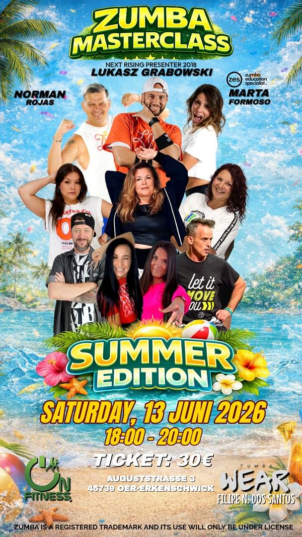 Experience pure summer vibes at the Zumba Masterclass – Summer Edition! 🌴☀️ Get ready for high-energy beats, exciting choreographies, and top international presenters. Dance, sweat, and enjoy 2 hours full of fun, power, and great vibes! 💃🔥