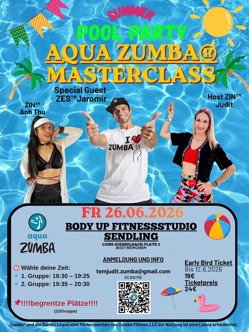 💦 Aqua Zumba®️ Masterclass 💦 Sicher dir dein Ticket für Aqua Zumba Party!!! Gerne mit mir kontakieren☺️! Ticket kaufen: [email protected] Wir haben einen der besten Aqua Zumba®️ Trainer und Ausbilder als Gast: ZES™️ Jaromir Cremers aus Niederland zusammen mit mir ZIN™️ Judit und mit ZIN™️ Anh Thu feiern wir mit Euch, die wohl spritzigste Party des Jahres. Plätze sind begrenzt!!!! Bitte bei Interesse sich direkt bei mir melden.
