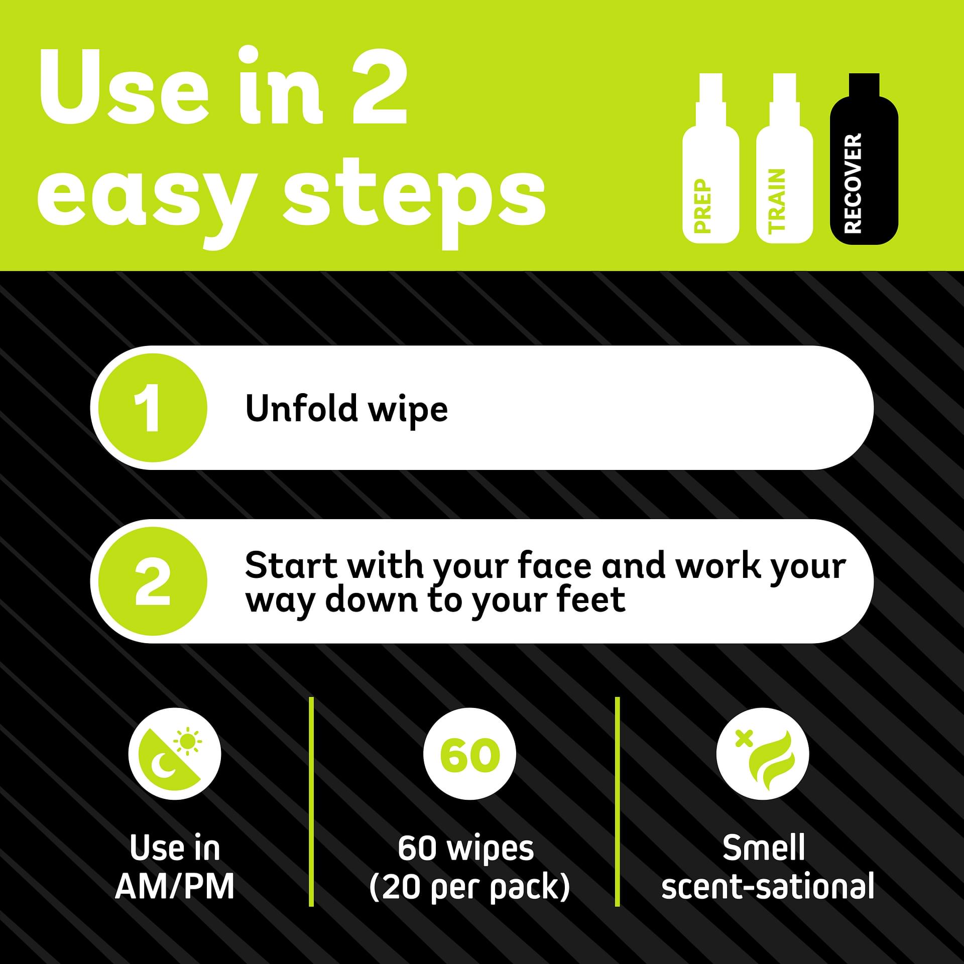 Engineered for Fitness Enthusiasts: A fitness-expert collaboration. Our body wipes after workout are made with natural fibres making the waterless body wash wipes both an eco- and skin-friendly athletic cleansing solution. These after-workout wipes come in a compact package of 20 sheets for easy on-the-go hygiene care
