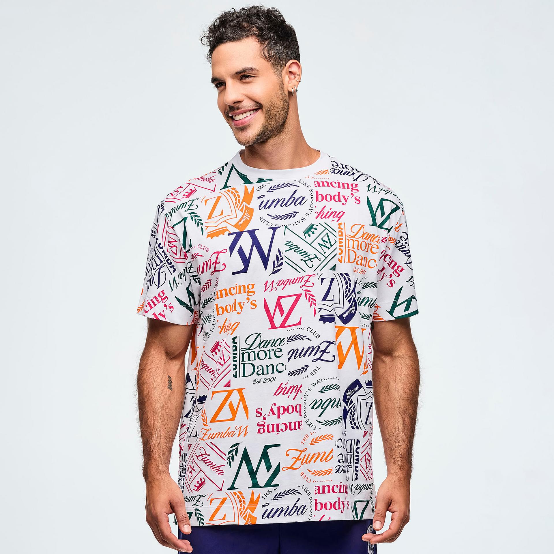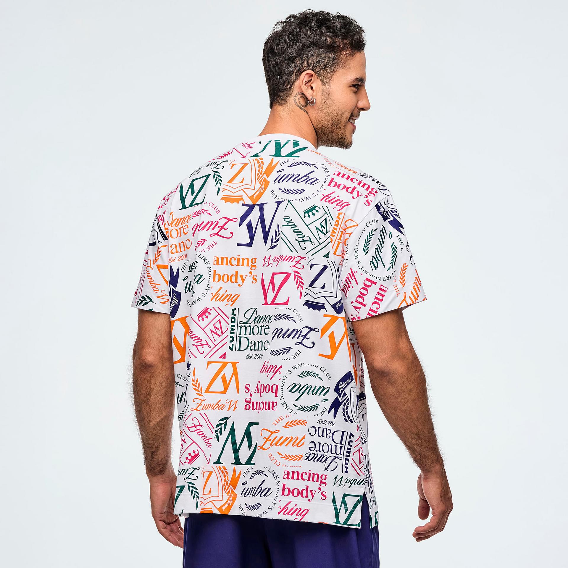 This top features a rib knit collar that adds a touch of sophistication while ensuring durability. The side vents are thoughtfully integrated to enhance functional movement, allowing you to move freely whether you're dancing, exercising, or simply enjoying a day out. The Zumba-exclusive all-over print adds a vibrant flair, making this piece not just a top, but a statement of individuality and energy.