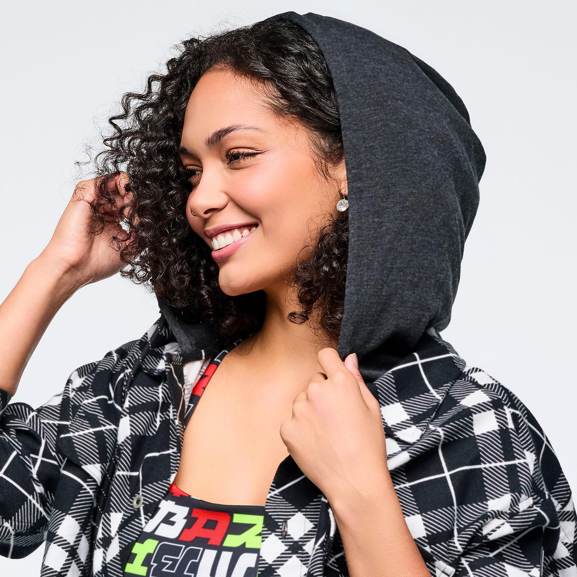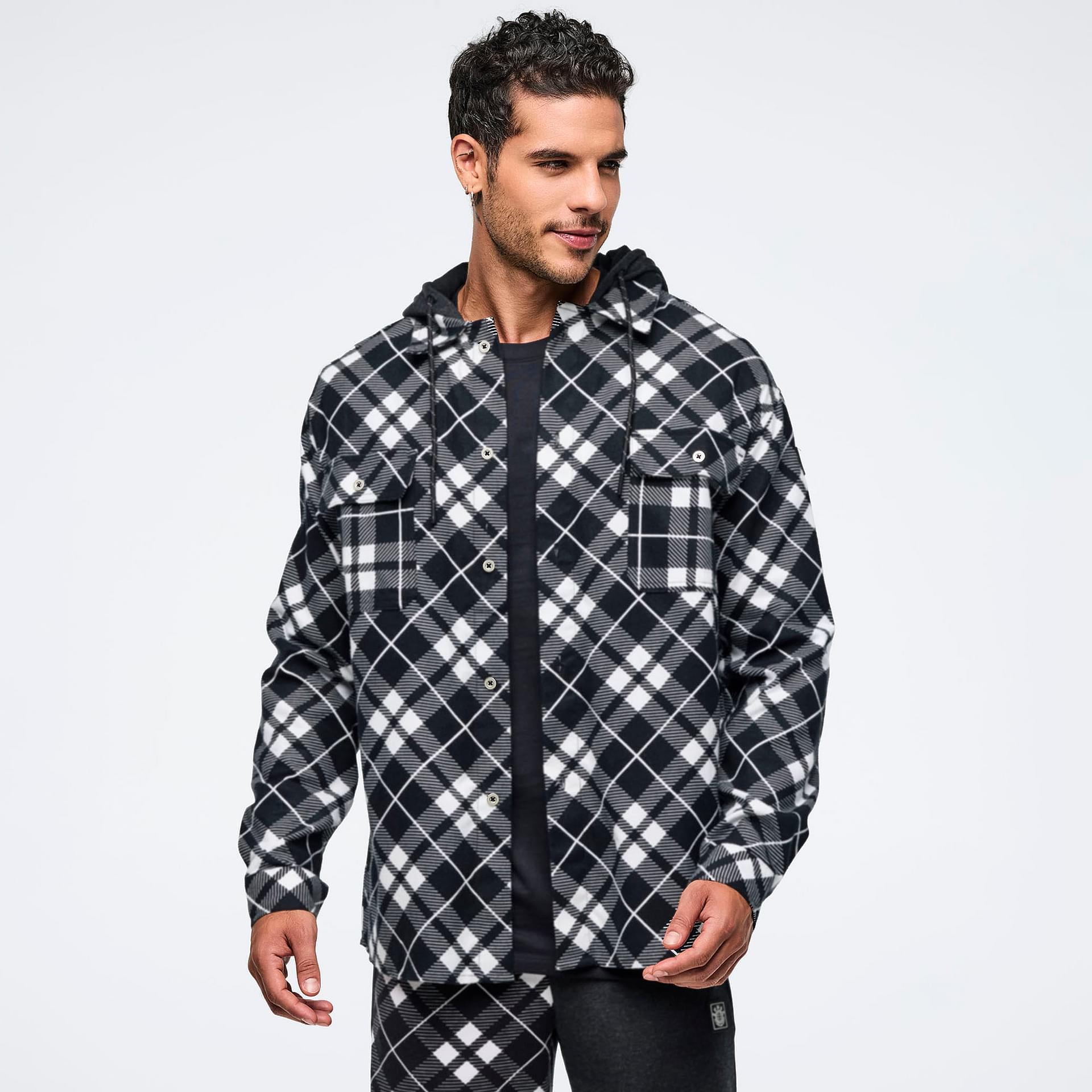 The oversized fit provides ample room for movement, making it a perfect companion for both active pursuits and casual outings. The long silhouette not only adds a contemporary touch but also ensures you stay cozy and stylish. With a unique flannel shacket silhouette complemented by a French terry hood, this piece effortlessly combines warmth and fashion.