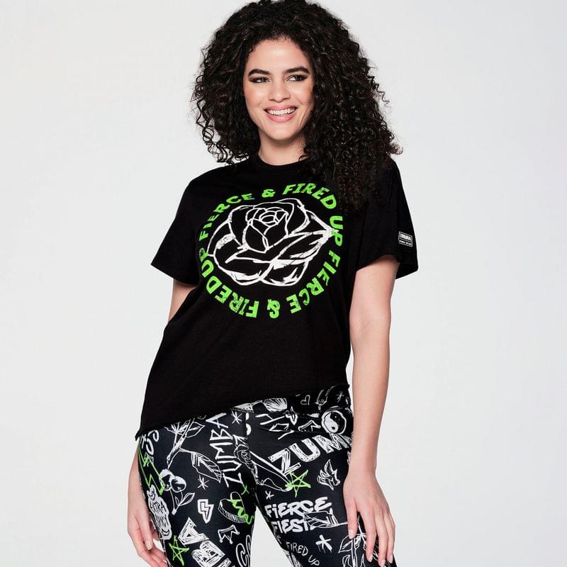 Cute top for Zumba classes. Fits true to size. Love the design. Very soft shirt. Like it!