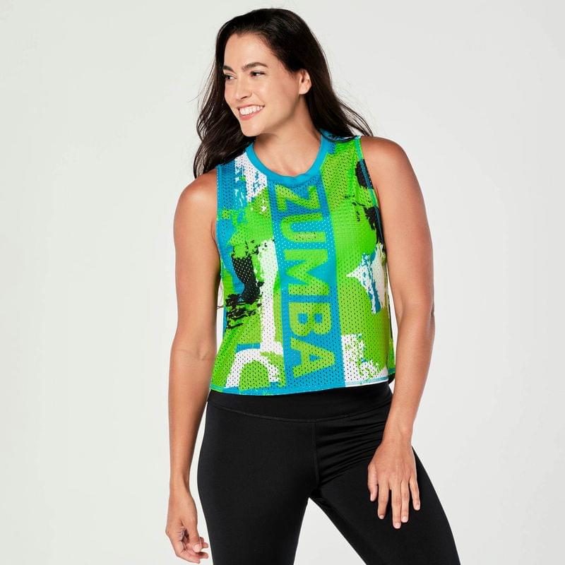 What sets this tank apart is its unique all-over print, which is made up of brush strokes and art-inspired phrases. It's a visual feast that will make you stand out in any fitness class. And to further enhance its artistic appeal, we've added the iconic Zumba logo on the front, showcasing your passion for dance and self-expression.