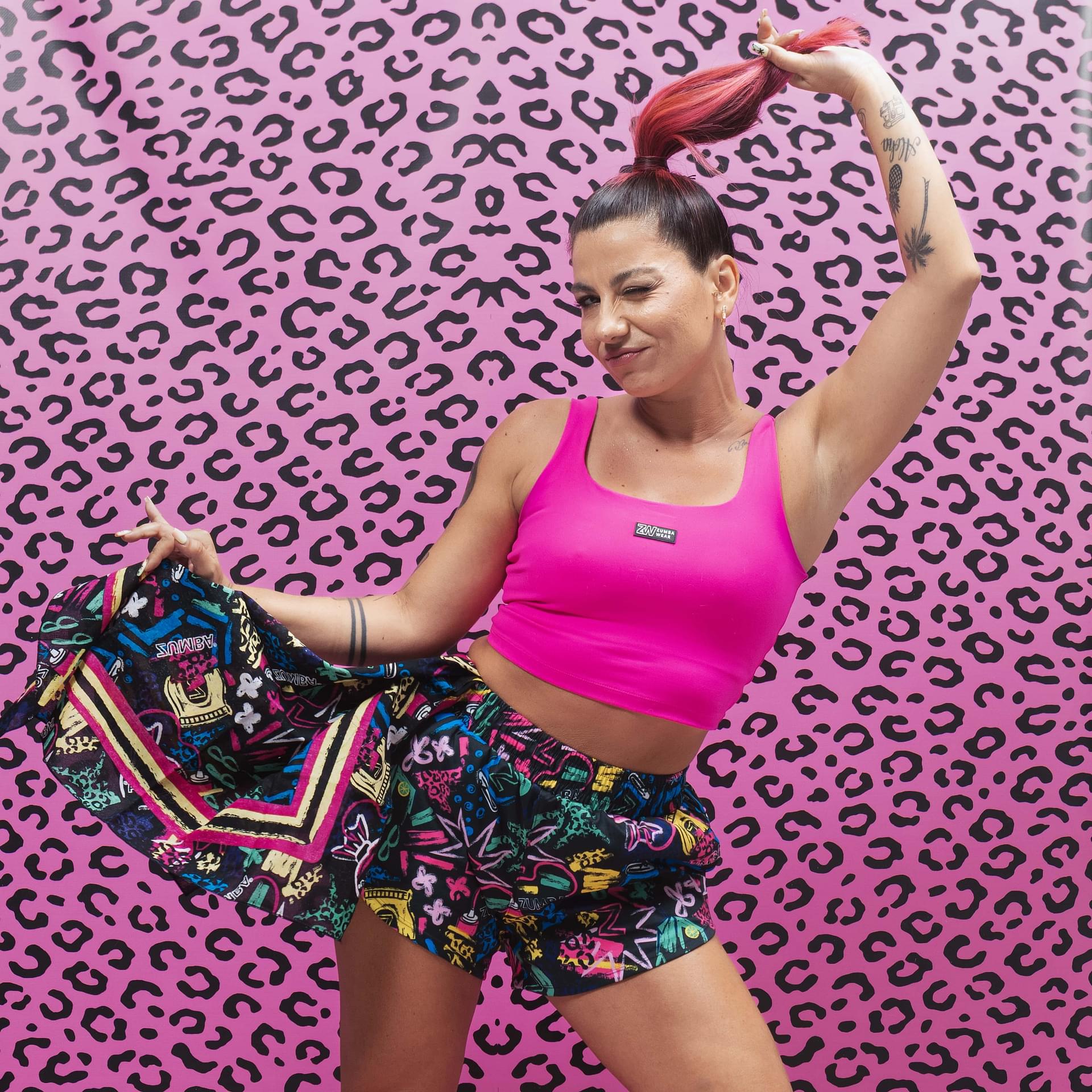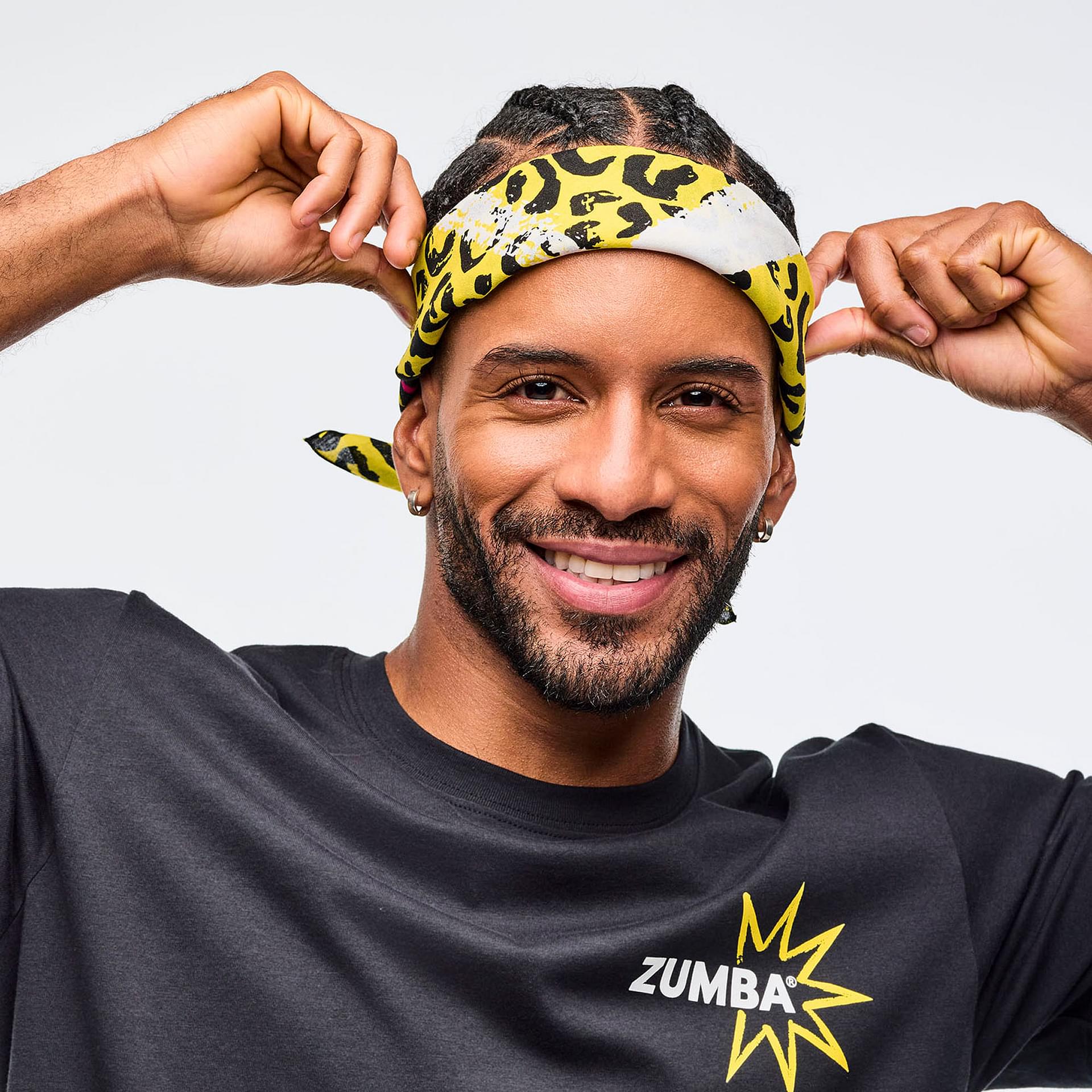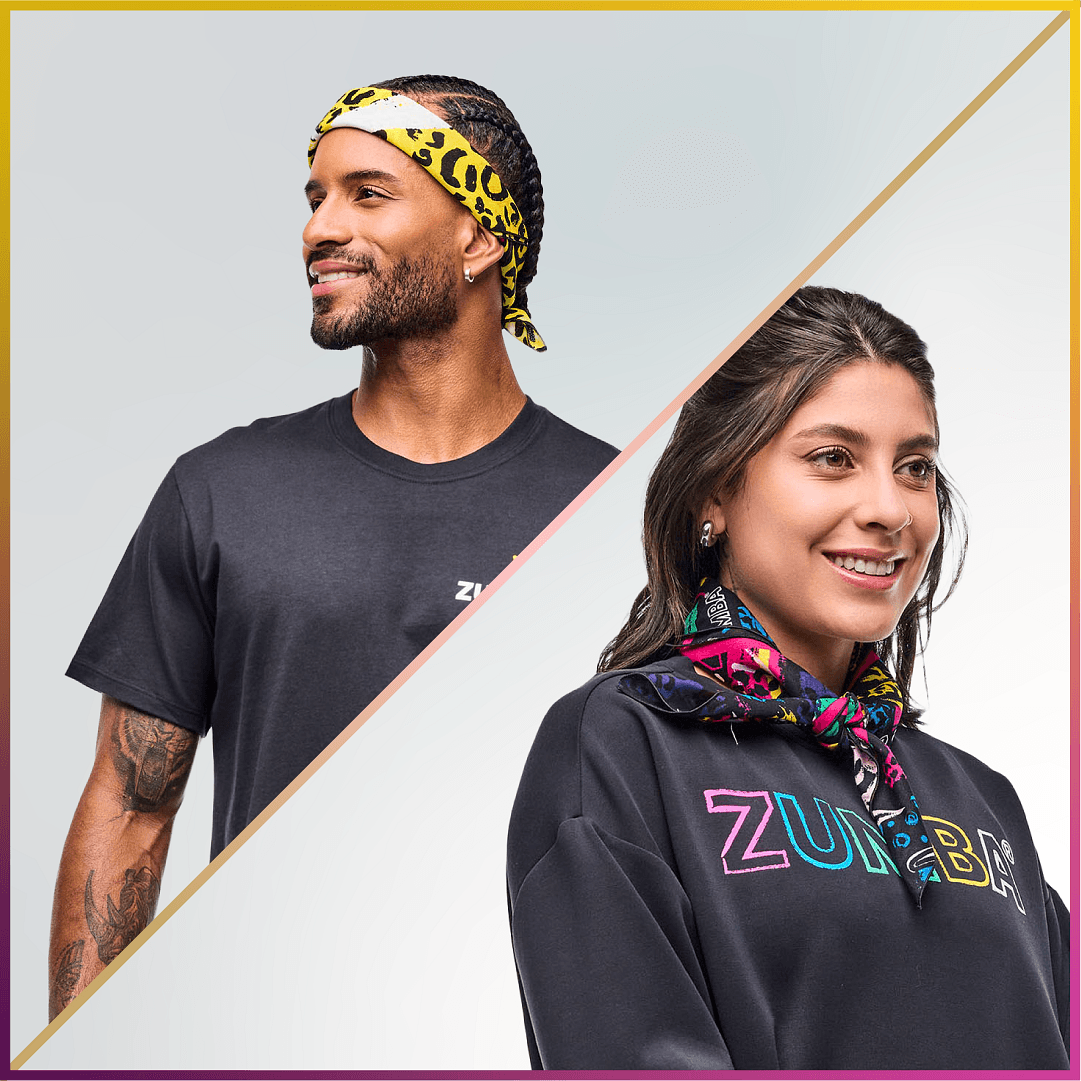In contrast, the second bandana showcases a striking leopard print, infused with hand-painted angled Zumba logos on two corners, making it a standout accessory for any fitness enthusiast.