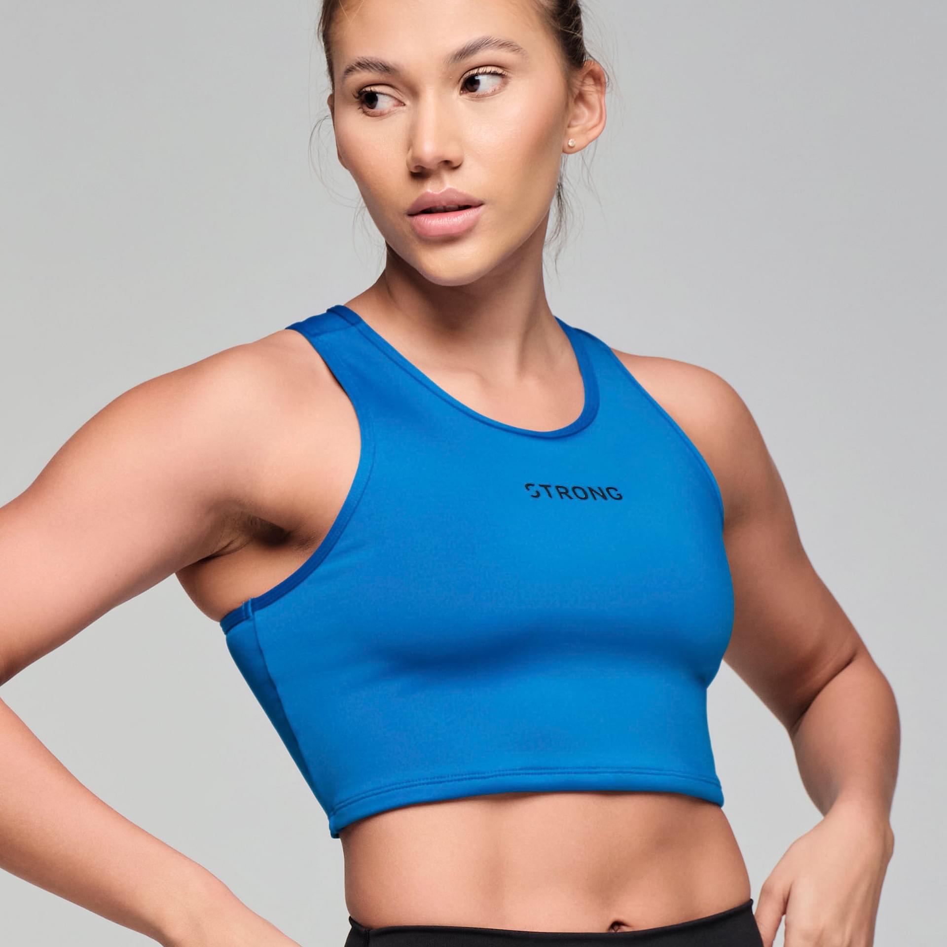 Designed for those who seek both performance and style, the Strong ID Electric High Neck Mid Crop Tank is perfect for layering or wearing solo.