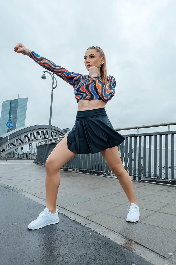 The 4-Way Stretch Fabric allows for maximum flexibility and comfort, while the booty flattering features will make you feel confident and empowered during your workout. Made with a composition of 87% Polyester and 13% Spandex, this skort is durable and moisture-wicking, keeping you dry and comfortable throughout your sweat session.