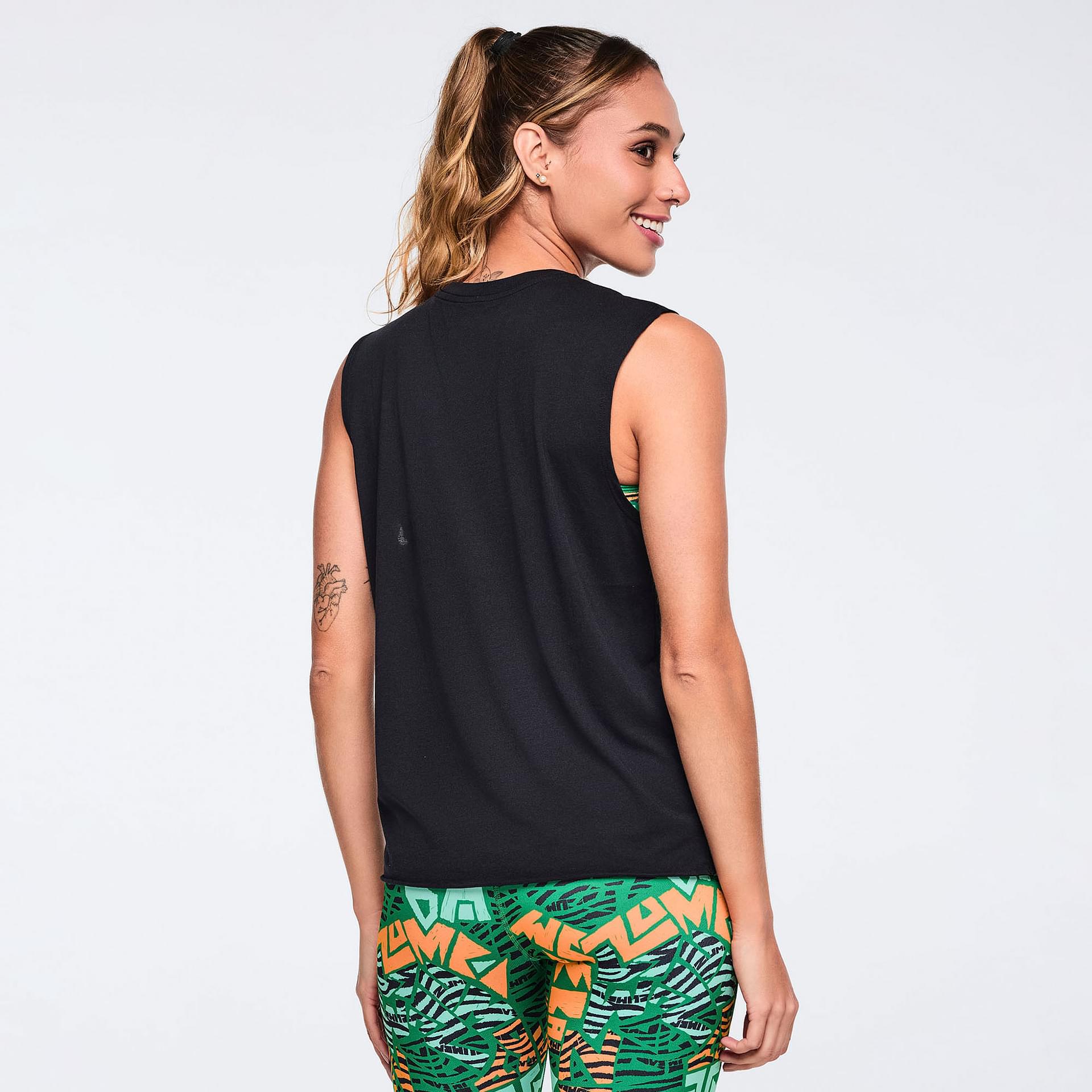 Featuring a bold, Zumba-exclusive front graphic print, this muscle tank is not just functional but also a statement piece that reflects your vibrant personality. Whether you're dancing, running, or simply enjoying a sunny day, this tank is designed to keep you feeling confident and inspired. With a regular fit length, it provides just the right coverage without compromising on style.