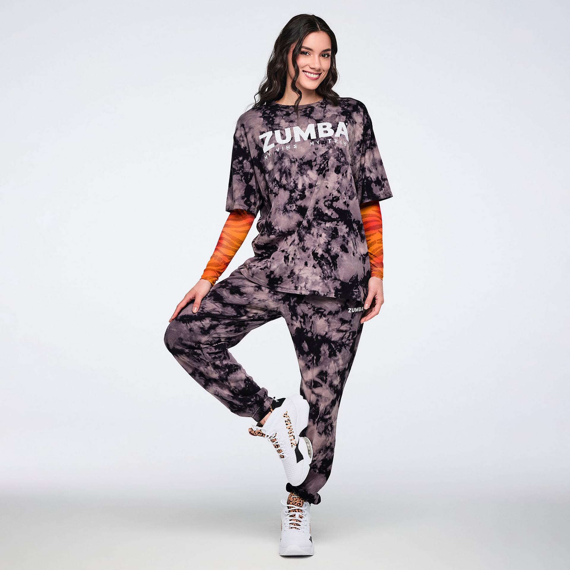 What truly sets this tee apart is the Zumba-exclusive front graphic, which adds a unique flair to your wardrobe. Each piece boasts a one-of-a-kind appearance, making it a standout addition to your collection. This tee is not just a piece of clothing; it’s a statement of individuality and a celebration of movement.