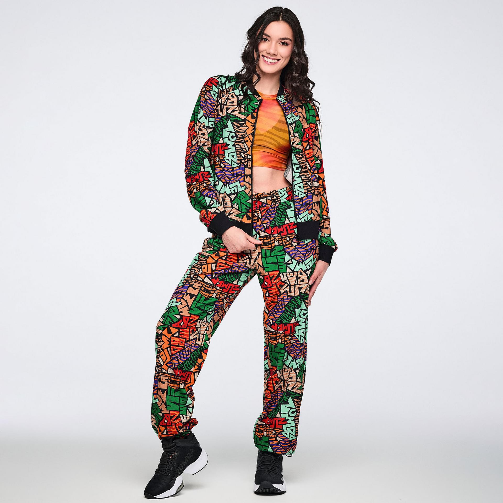 Inseam pockets provide convenient storage for essentials, allowing you to keep your hands free while on the go. The exclusive allover graphic print adds a vibrant flair, making a bold statement wherever you wear it.