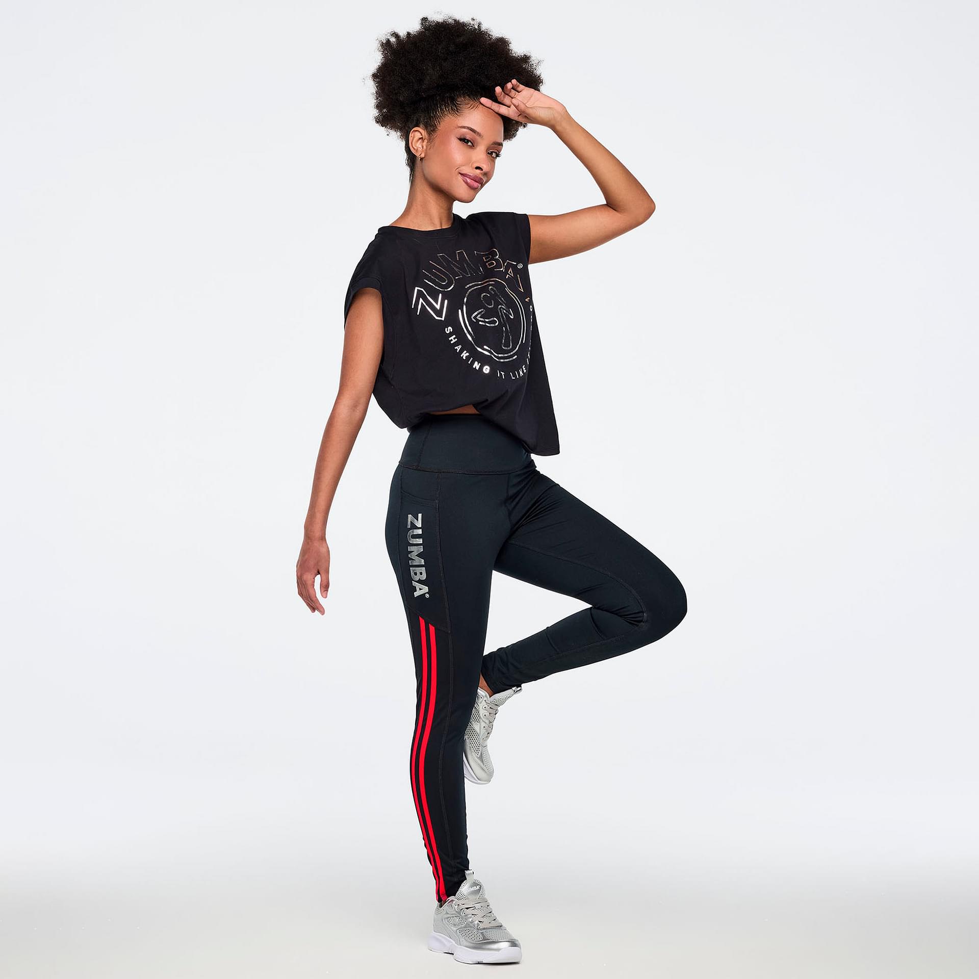 Experience the perfect blend of style and functionality with the Zumba 25 High Rise Ankle Leggings in Bold Black.