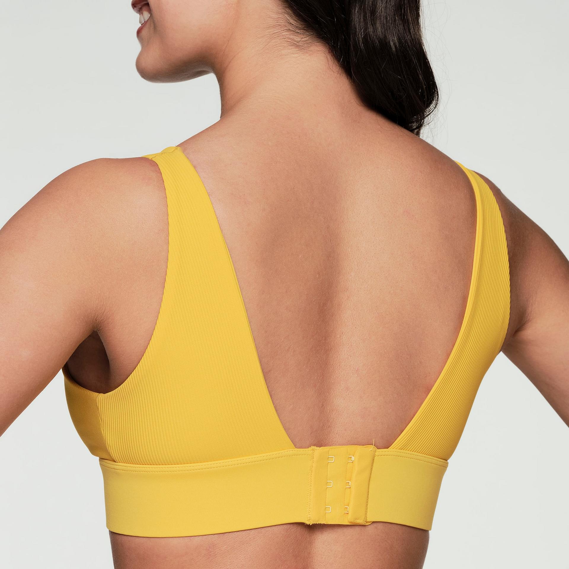 Nice bra/top. Unusual as it has an actual bra back closure. Runs small. Vibrant color