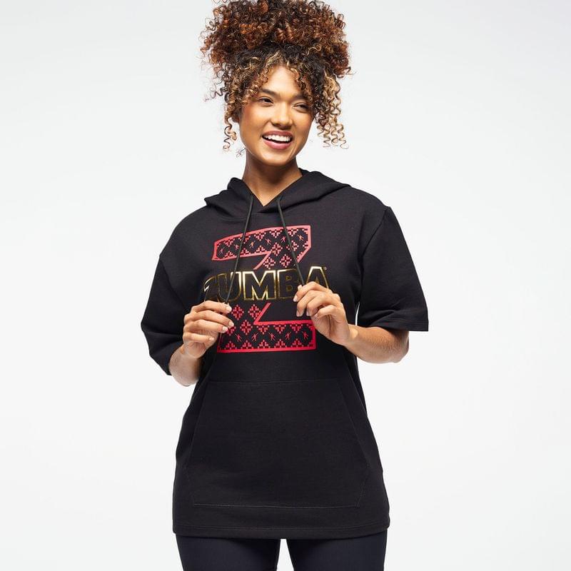 Whether you're hitting the dance floor or enjoying a laid-back day with friends, the Zumba Holiday Short Sleeve Hoodie combines comfort, style, and versatility, making it a must-have addition to your wardrobe.