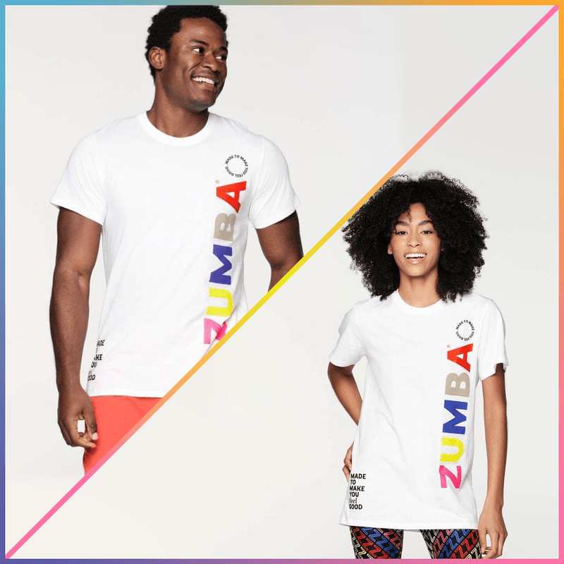I love that Zumba finally gave us a white shirt and the colors are great!