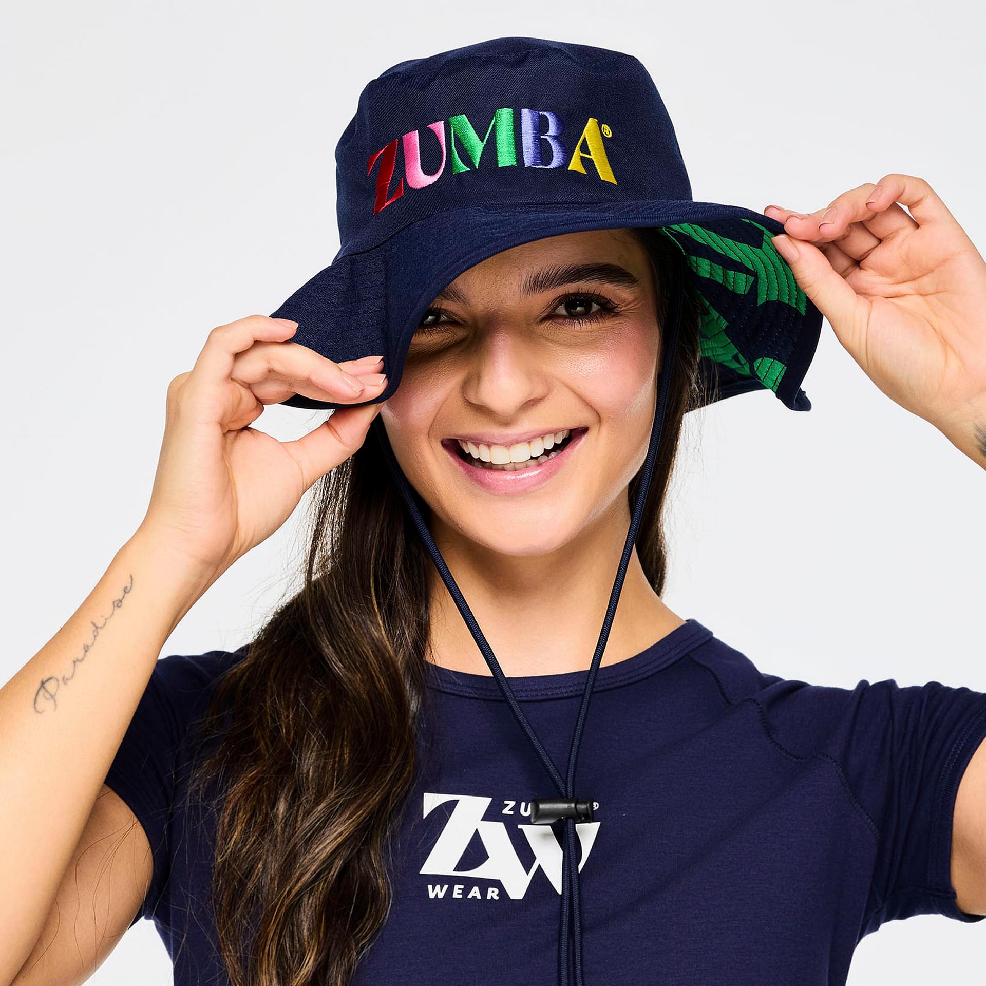 One of the standout features of this sun hat is its reversible design. On one side, you'll find a bold Zumba all-over print that radiates energy and enthusiasm. Flip it over to reveal a stunning multicolor Zumba embroidery that adds a touch of flair to any outfit. This duality not only allows for versatile styling options but also reflects the dynamic spirit of the Zumba community.