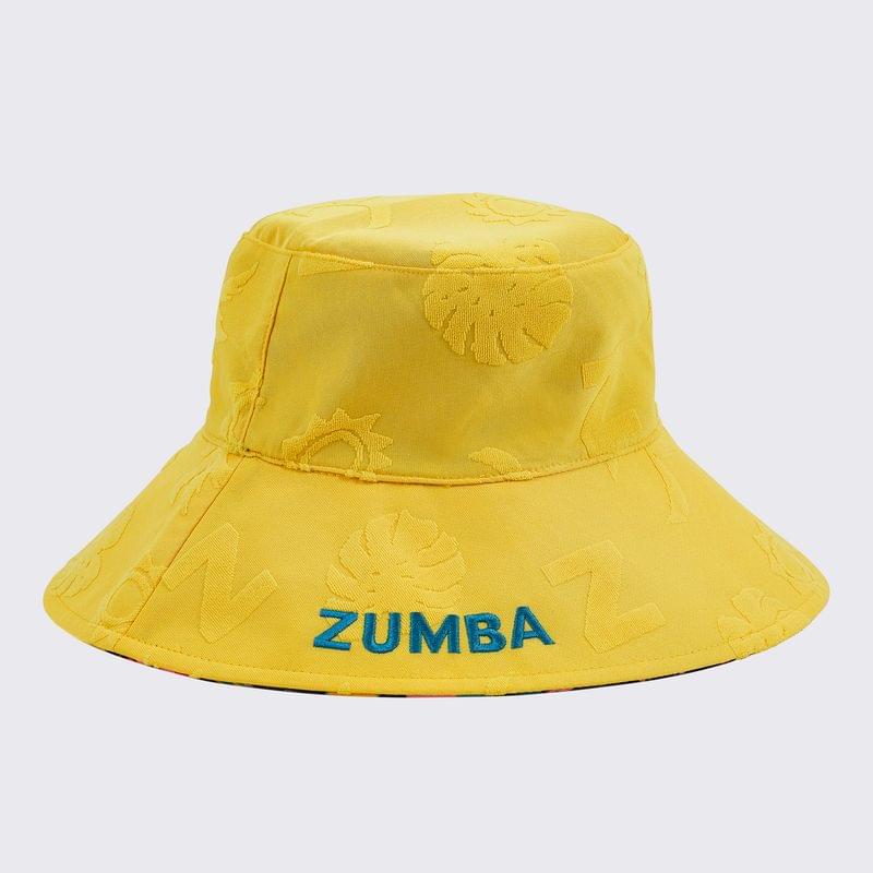 The last bucket hat I bought on sale was way too large and falls off when I teach plus brim is small. This one is GREAT! The brim is larger giving more sun protection and as it's reversible you get 2 hats in one! I do wish it had a wind strap though which comes in handy when at the beach or boating. The solid yellow side has beautiful turquoise embroidered Zumba on it and the embossed pattern on the yellow side is very nice.
