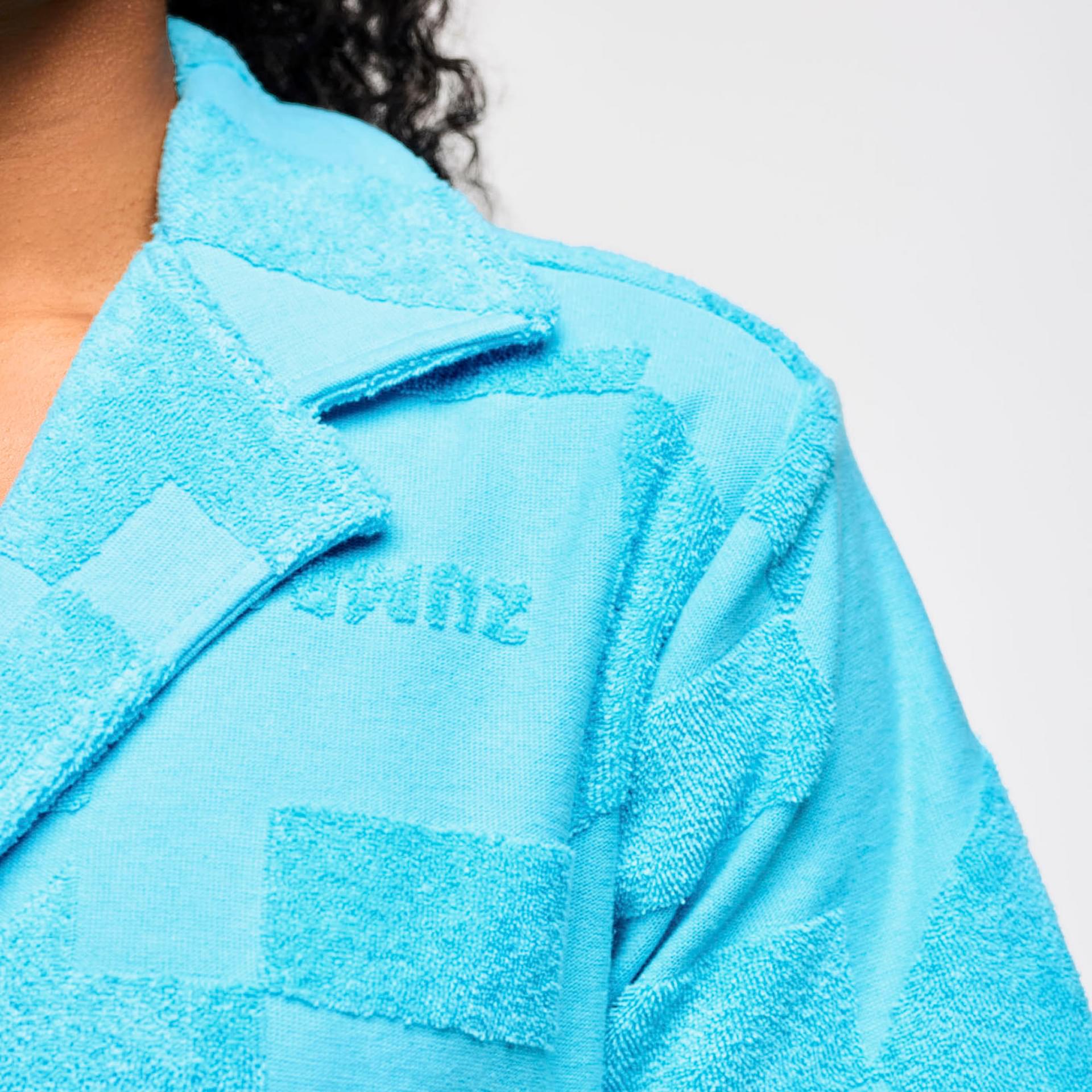 Experience the perfect blend of comfort and style with the Zumba Rays Terry Button Down. This unisex short sleeve shirt is designed for those who appreciate both functionality and fashion in their activewear. Crafted from a premium terry cloth fabric, it features an exceptional composition of 85% cotton and 15% polyester, ensuring a soft touch against the skin while providing the durability needed for your active lifestyle.