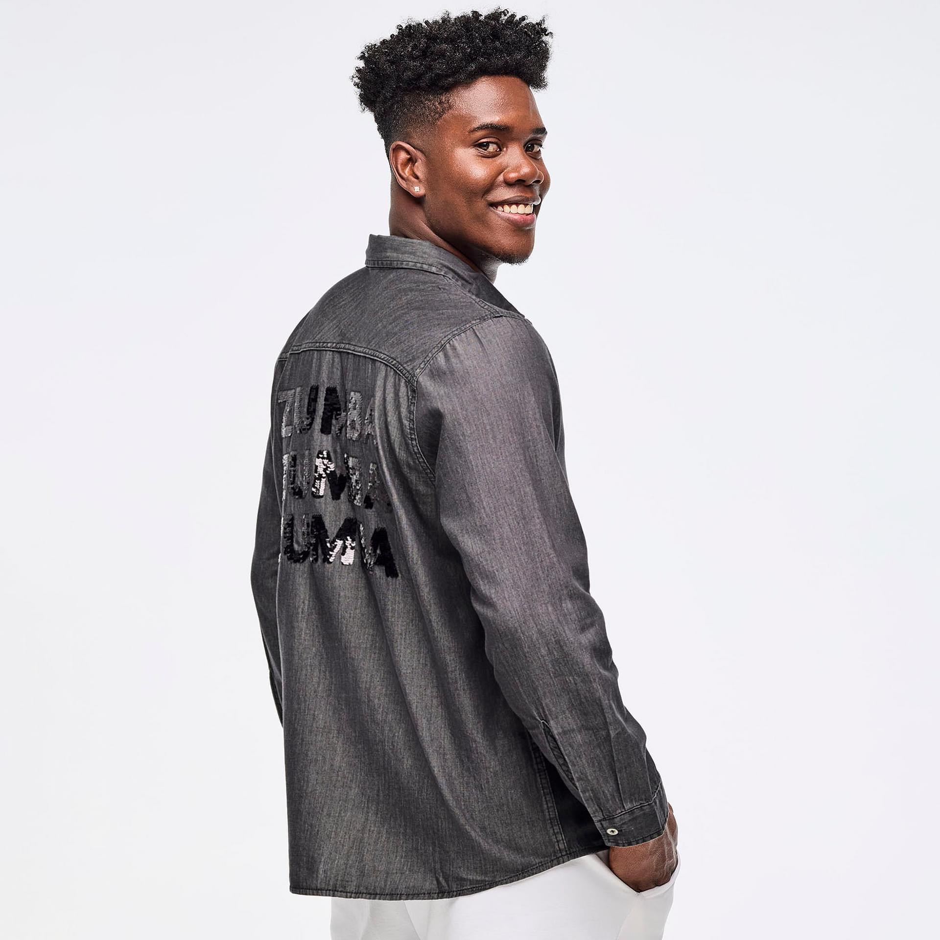 Super soft denim top, fun sparkles in the back and I ordered a small and it's oversized which I love. Comfortable and fun.