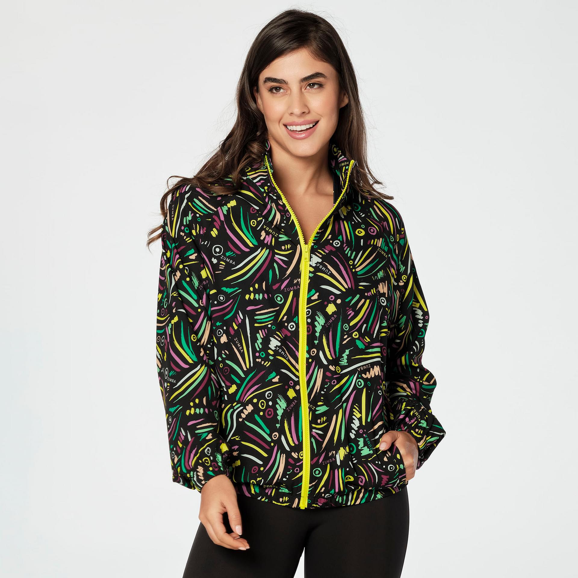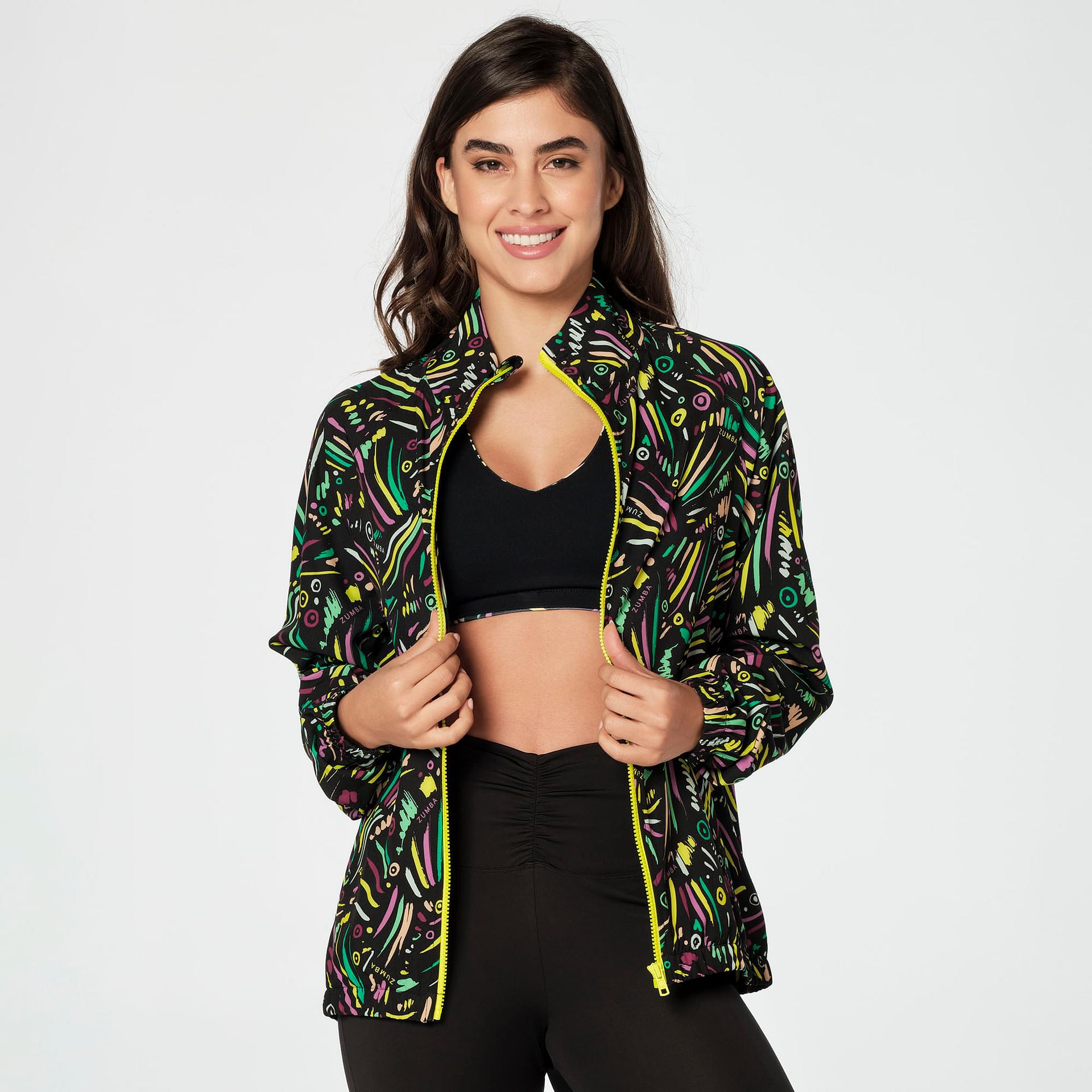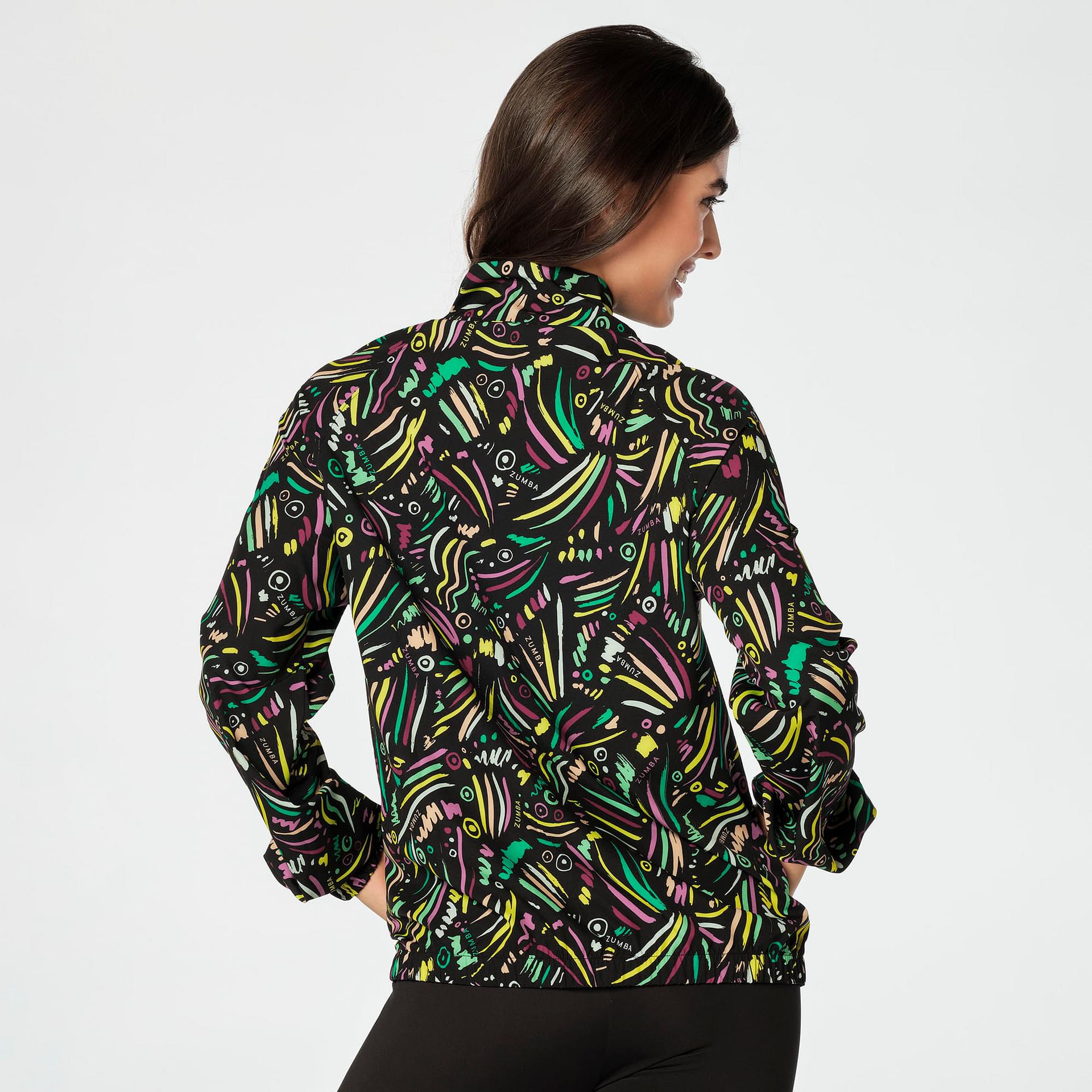 The Zumba Transform Zip-Up Jacket is a must-have for any active fashionista. With its multicolor all-over print, this jacket is sure to turn heads wherever you go. But it's not just about the looks - this jacket is designed with functionality in mind.