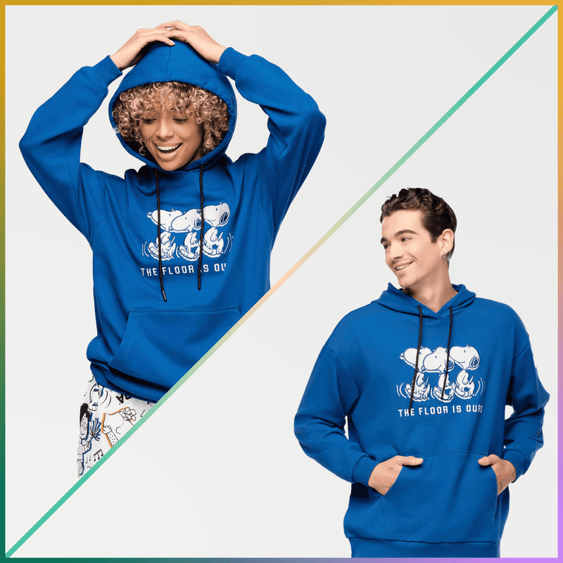 When I saw this hoodie advertised I knew right away I was going to get it. The hoodie is comfortable. It is not lined though. It is cute and I love the three snoopy dancing on the front. The Royal Blue really pops. I got a lot of compliments on this sweat shirt. I love that Zumba makes clothes that can go from your class to the street.