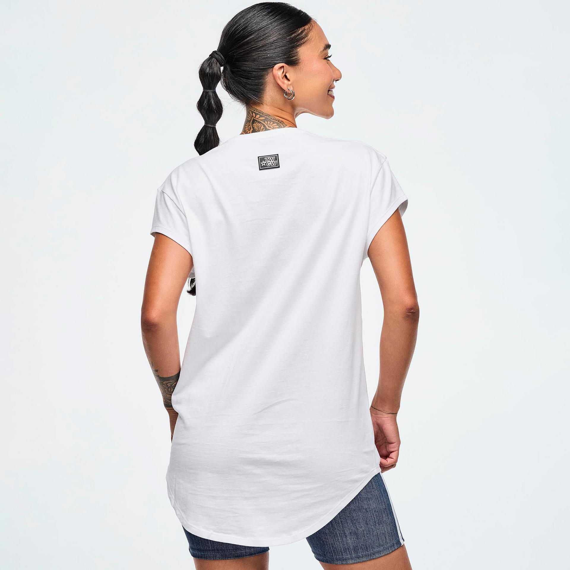 What truly sets this tee apart is the oversized Zumba-exclusive graphic print on the front, which adds a vibrant and energetic flair to your wardrobe. This eye-catching detail is perfect for those who want to express their passion for movement and dance. Additionally, the branded rubber patch on the back serves as a subtle yet stylish nod to the Zumba brand, reinforcing the quality and authenticity of the product.